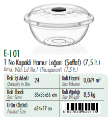 1 No Kapaklı Hamur Leğeni (Şeffaf )ERKOÇ 7,5 LT24