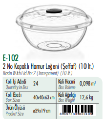 2 No Kapaklı Hamur Leğeni(Şeffaf ) ERKOÇ 10 LT*24