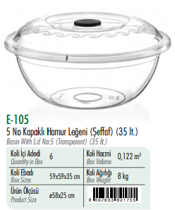5 No Kapaklı Hamur Leğeni (Şeffaf) ERKOÇ 35LT*6
