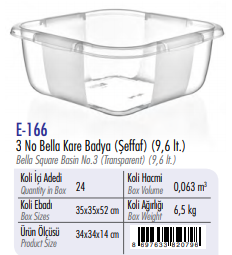 3 No Bella Kare Badya (Şeffaf ) ERKOÇ 9,6 LT