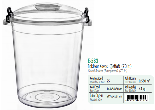 Bakliyat Kovası 70 Litre (Şeffaf) ERKOÇ