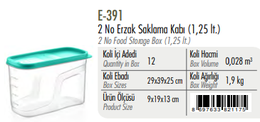 2 No Erzak Saklama Kabı ERKOÇ 1,25 LT*12