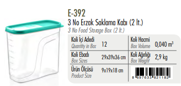 3 No Erzak Saklama Kabı ERKOÇ 2 LT*12