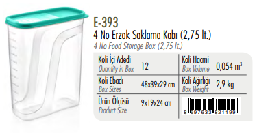 4 No Erzak Saklama Kabı ERKOÇ 2,75 LT*12