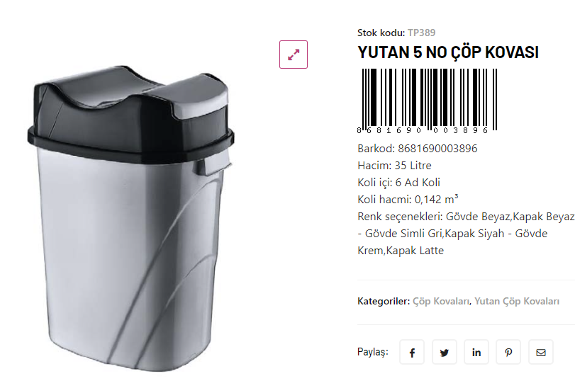 PELİCANO ÇÖP KOVASI NO-5 35 LT YUTAN