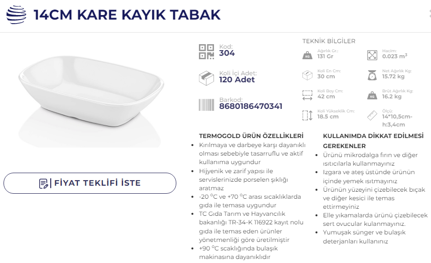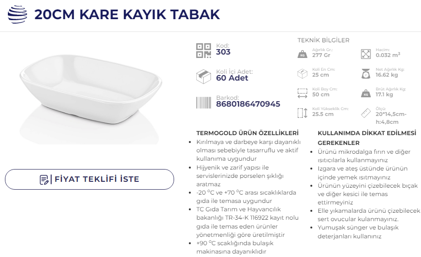 ATLAS KARE KAYIK 17 CM TERMO 305 KOD