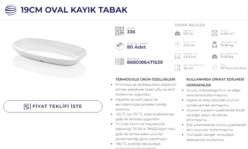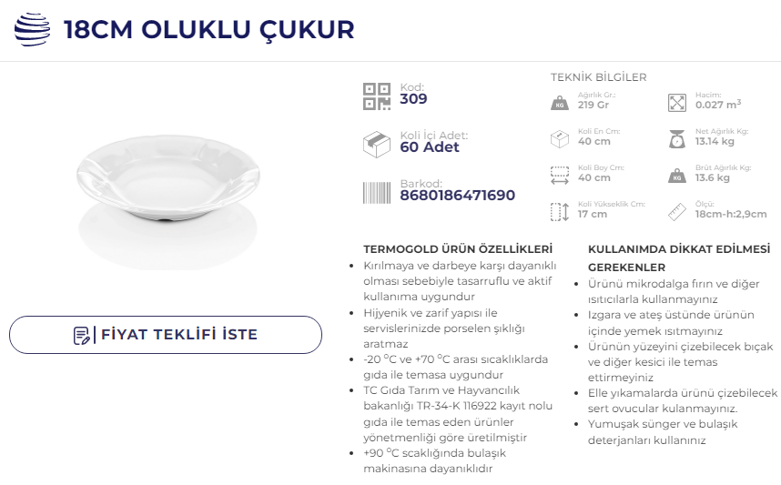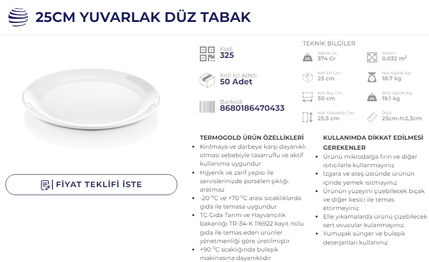 ATLAS SERVİS TABAK 19 CM TERMO 312 KOD