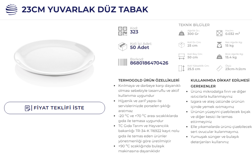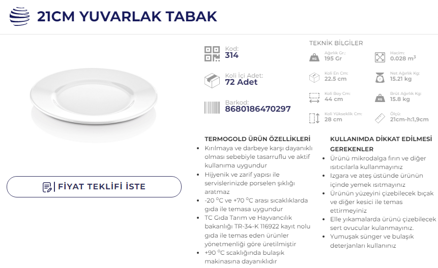 ATLAS SERVİS TABAK 21 CM TERMO 314 KOD
