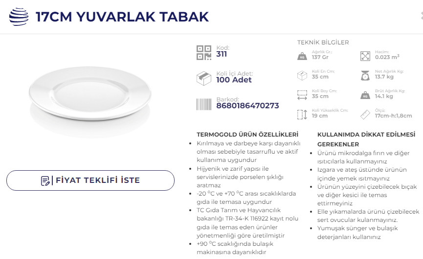 ATLAS SERVİS TABAK 17 CM TERMO 311