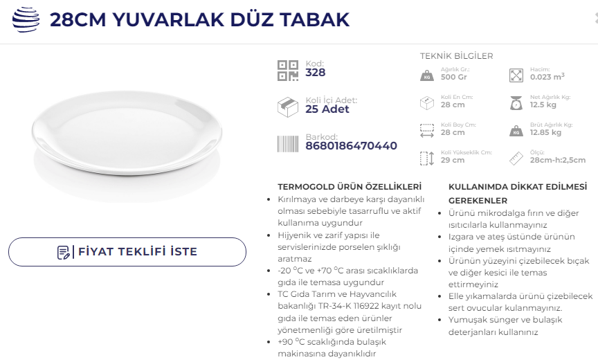 ATLAS SERVİS İNT 28 CM TERMO 328 KOD