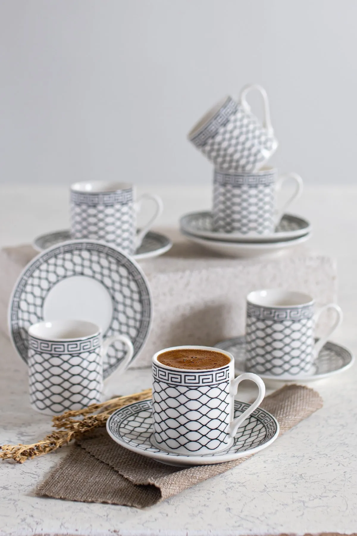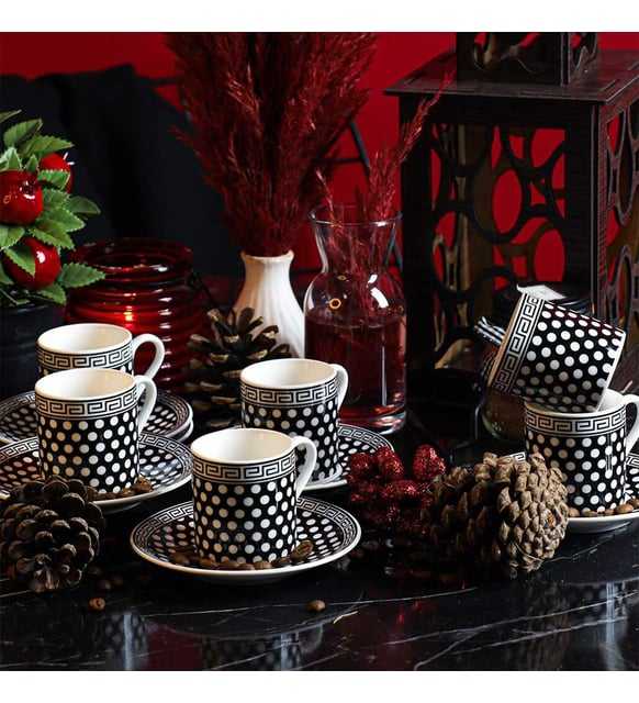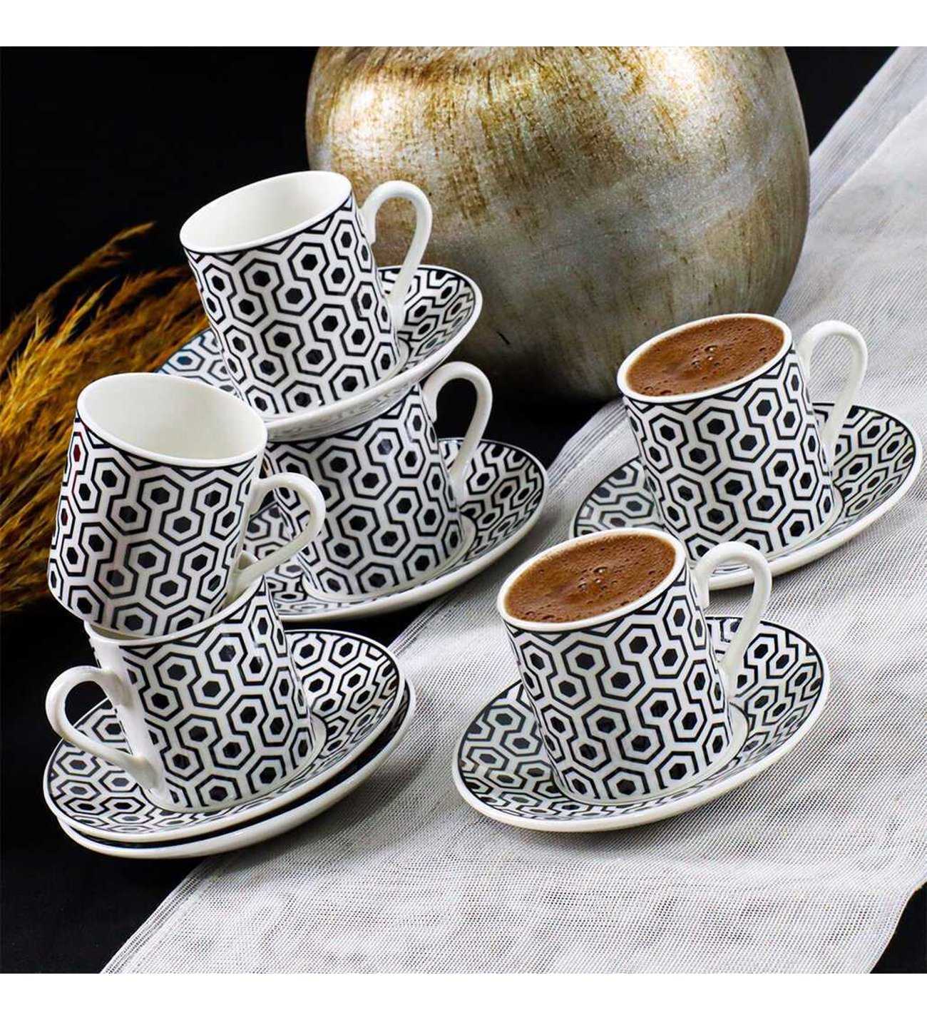 PORSELEN SİYAH BEYAZ KAHVE FİNCANI